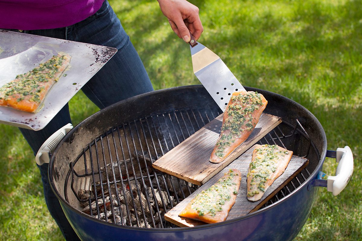 Test Kitchen tip: Slightly charring the planks gives the dish a deeper flavor. Prefer your wood less toasty? Skip this step and begin cooking over indirect heat.