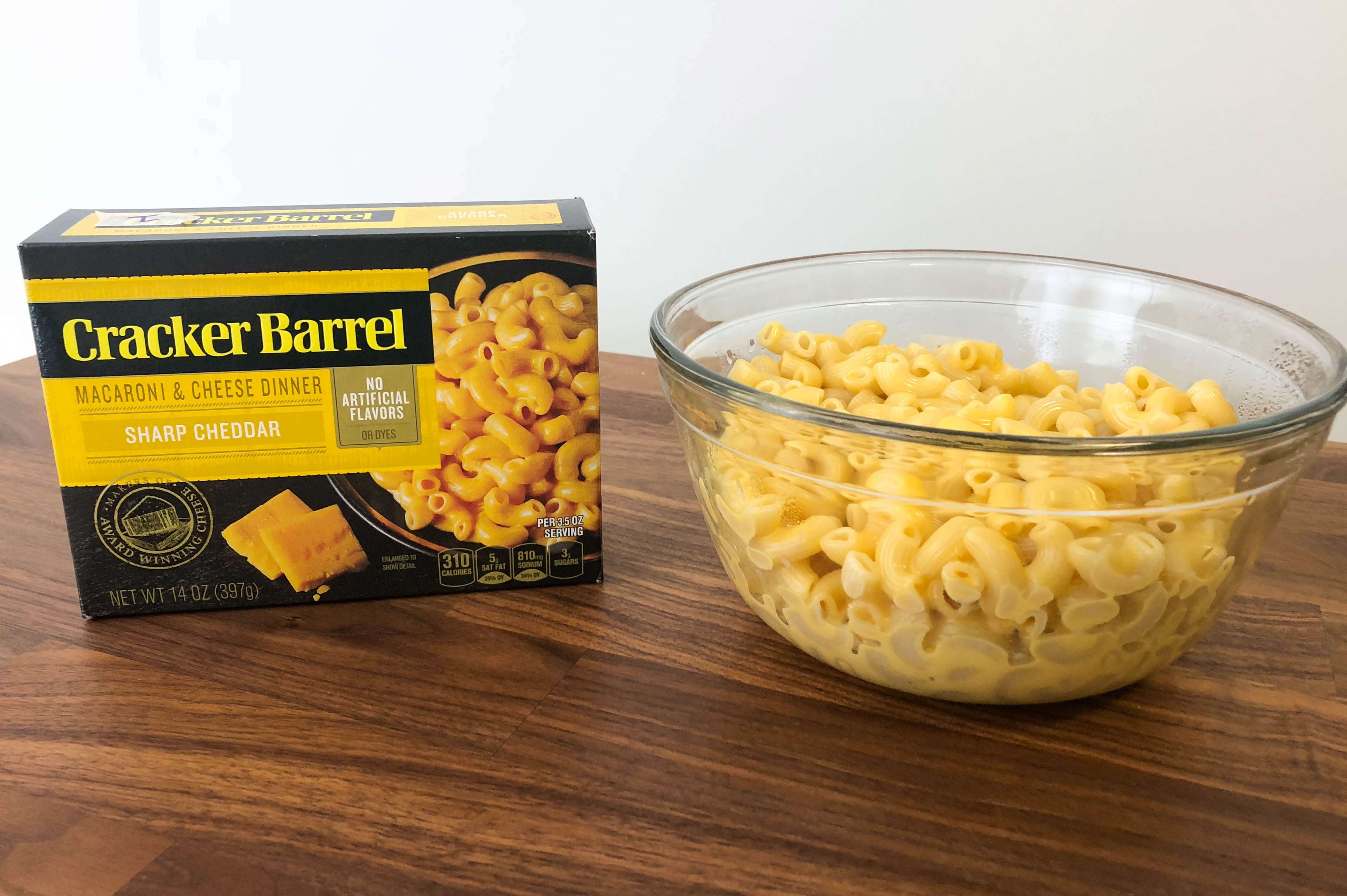 Cracker Barrel Sharp Cheddar Macaroni and Cheese was a standout in our test. Peeking at the package post-sampling, this brand sets itself apart from the others with its box. The black box made this brand seem more sophisticated like this mac and cheese was designed for grown-ups.