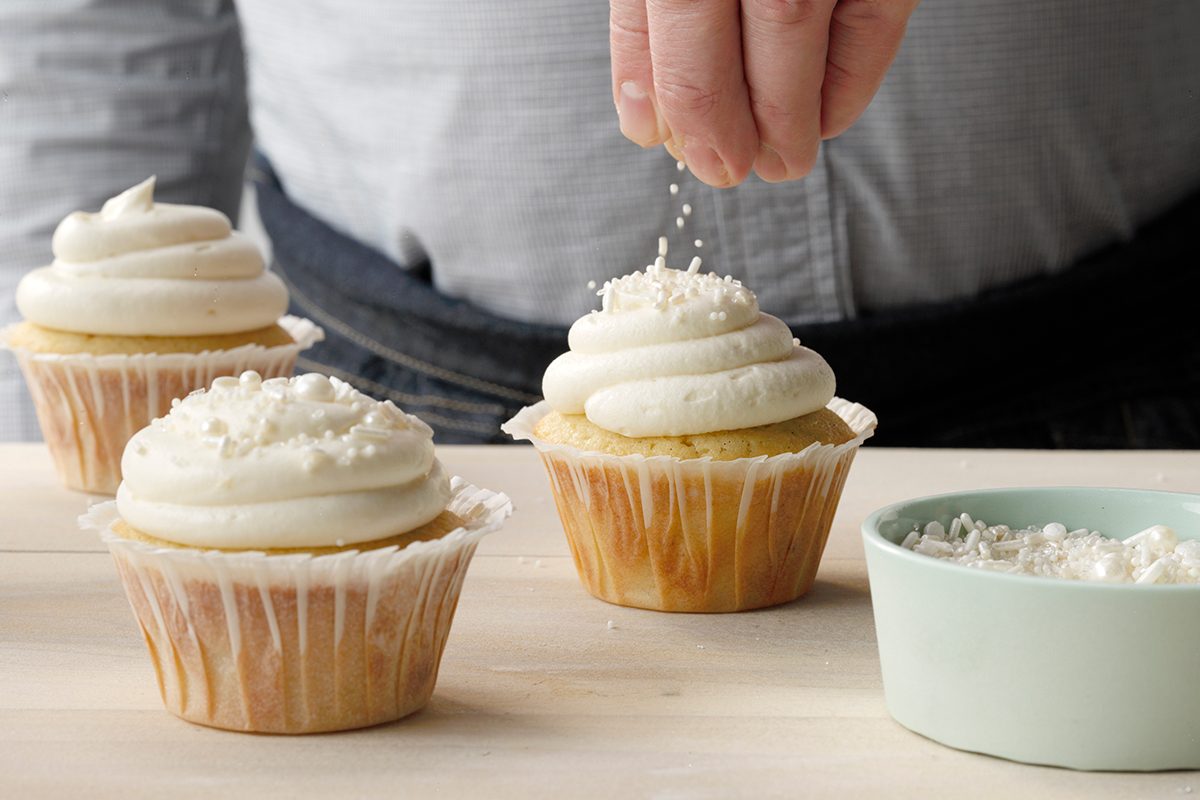 Our Test Kitchen’s favorite vanilla cupcake recipe comes to us from Alysha Braun in Ontario. She says her son adores these cakes. And these cupcakes are definitely something special: They’re not just regular ol’ vanilla, they’re vanilla bean. Here’s what you need to make these flavorful treats.