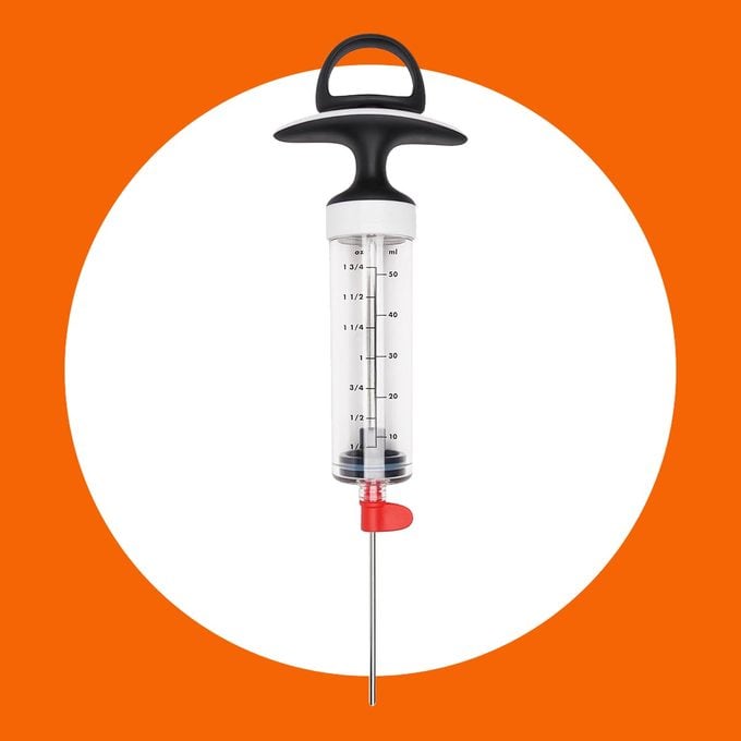 OXO Flavor Injector Tool: Add oil, herbs and more directly to your turkey for the juiciest bird ever. A flavor injector works similarly to the wet brining method, allowing the turkey to absorb salt and herbs directly into the meat. My mouth is practically watering thinking about how flavorful the turkey will be thanks to this problem-solving tool.