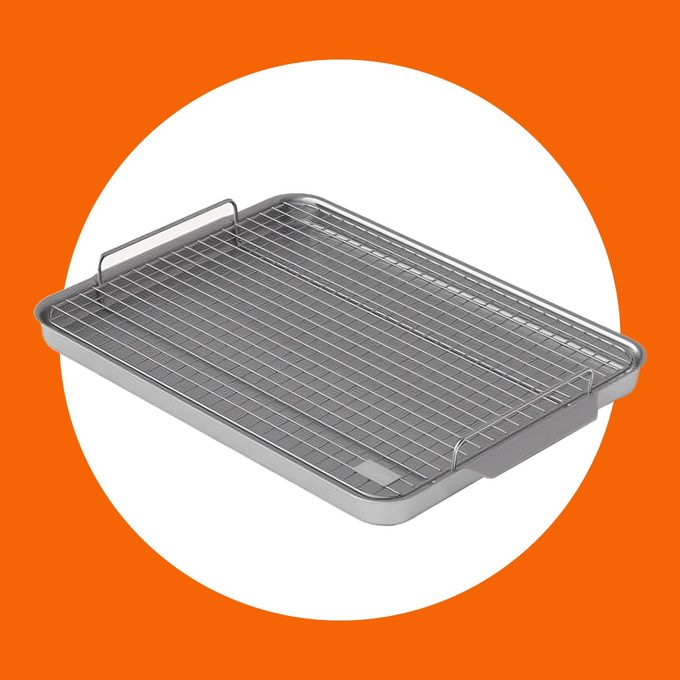 Kana Half-Sheet Roasting Set: Why this pan? Traditional roasting pans are deeper and often come with a shaped rack to hold the turkey or roast. While very sturdy, these deeper pans prevent air circulation around the meat. This Test Kitchen-preferred roasting pan is shallow, allowing for better air circulation to create a browner turkey. Talk about a win-win!