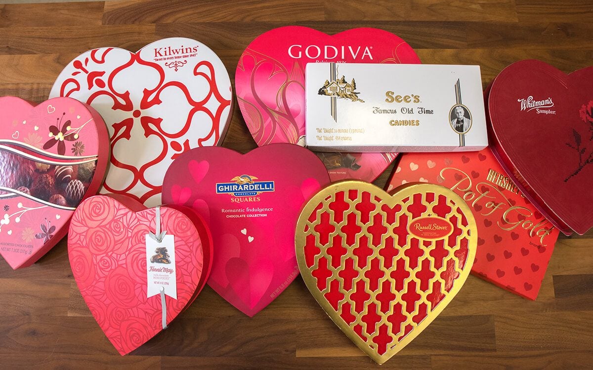 So this time around, I rounded up nine brands of Valentine’s Day chocolates—a few major names and a few lesser-known—to test their candies in time for Valentine’s Day gift-giving. Along with a crew of dedicated taste testers, here’s what we tried: Fannie May, Ghirardelli, Godiva, Hershey’s Pot of Gold, Kilwin’s, Lindt, Russell Stover, See’s and Whitman.