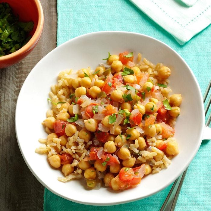 I make chana masala, the classic Indian chickpea curry, in my slow cooker. First browning the onion, ginger and garlic really makes the sauce amazing. —Anjana Devasahayam, San Antonio, Texas