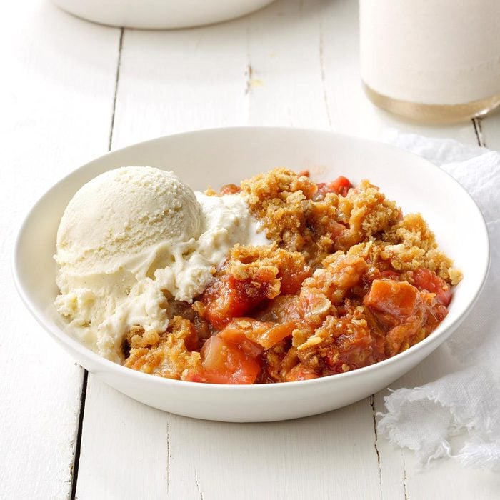 To tell you the truth, I’m not sure how well my strawberry rhubarb crumble keeps—we usually eat it all in a day! You can skip the apples and strawberries in the recipe, which I do sometimes. But they do make this quick, easy dessert extra good. For a truly Irish finish, serve with custard! —Linda Enslen, Schuler, Alberta