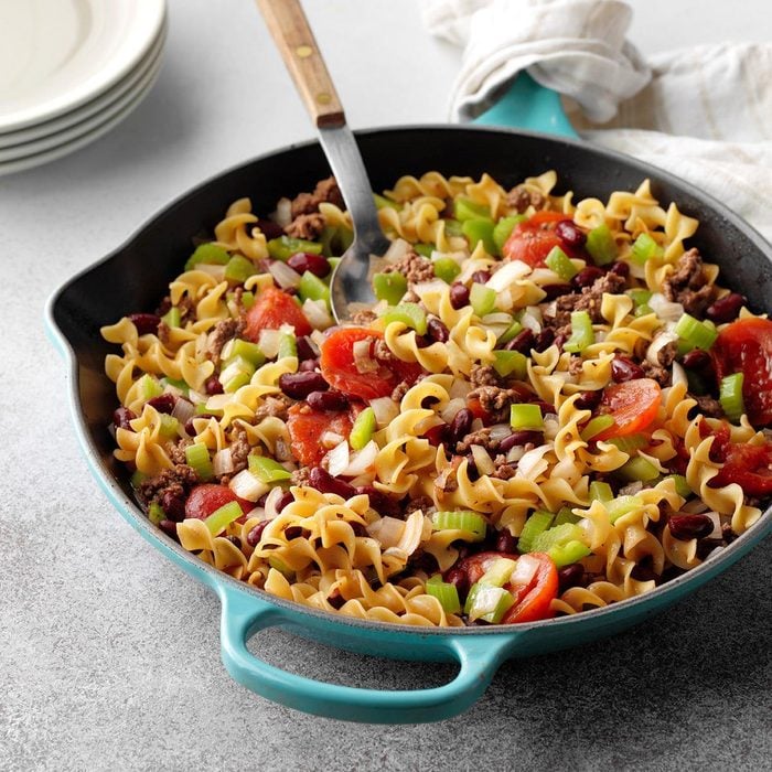 Everyone comes back for seconds when I serve this well-seasoned skillet supper. I like the fact that it's on the table in just 30 minutes. —Bonnie Morrow, Spencerport, New York