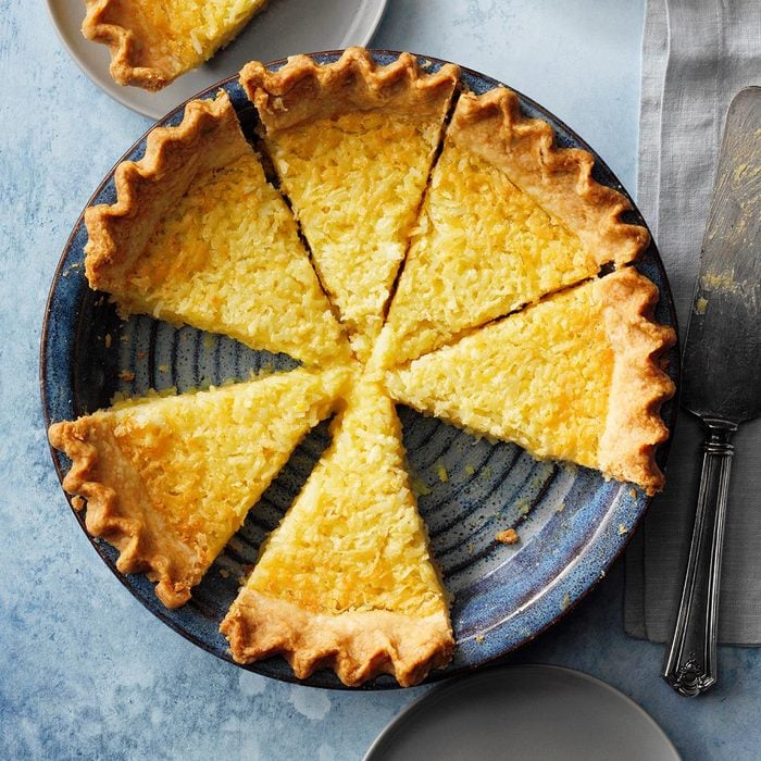 I use homegrown cherries in this bountiful pie with its unique crunchy coconut topping. But I’ve found that purchased tart cherries yield a dessert that’s nearly as delicious. I always bake this pie around Presidents Day or Valentine’s Day, but it’s popular with my family in any season. —Lori Daniels, Beverly, West Virginia