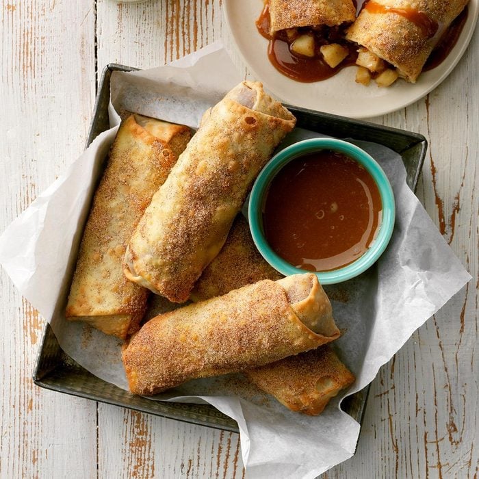Like a hot hand-held apple pie a la mode, these crunchy air-fryer treats star tart apples, cinnamon and a little cream cheese. For crispy, not chewy, exteriors, be generous with the cooking spray.