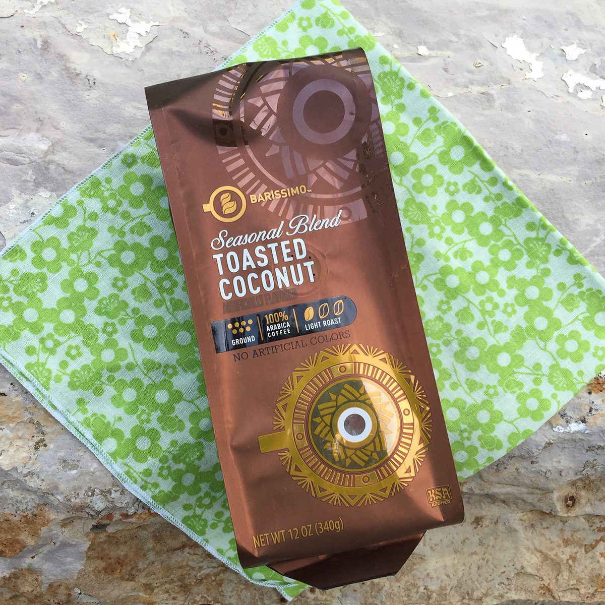 Before you light those tiki torches and cue up “The Girl from Ipanema,” you need to start your day with a good cuppa. We brewed up a pot of Aldi’s Barissimo coffee in the new toasted coconut flavor. Right out of the bag, the ground coffee smelled amazing—so coconutty! And when it was brewed, that aroma only intensified. Taking a sip, we found this to be a nice medium roast with the perfect amount of coconut flavor. My gang of testers agreed that this coffee was flavorful enough on its own—no creamer or sugar needed, which is great for folks that are trying to cut back on sugar.