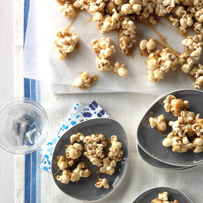My guests say they can't stop eating my caramel corn! For our basketball party I fix enough to fill a big red tin with our team's logo. The delectable syrup coats the popcorn well but isn't sticky. —Sharon Landeen, Tucson, Arizona