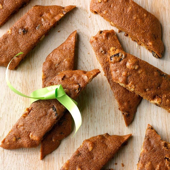 Dress up a cookie plate with these old-fashioned spice bars full of raisins, molasses, cinnamon, ginger and nuts. Then dip the chewy treats in coffee or hot cocoa on frosty days. It’s said the cookies are called “hermits” because you can hide them out of sight, just like hermits, for days. They’ll be just as good—maybe even better as the flavors blend and develop! —Jeri Tirmenstein, Apache Junction, Arizona