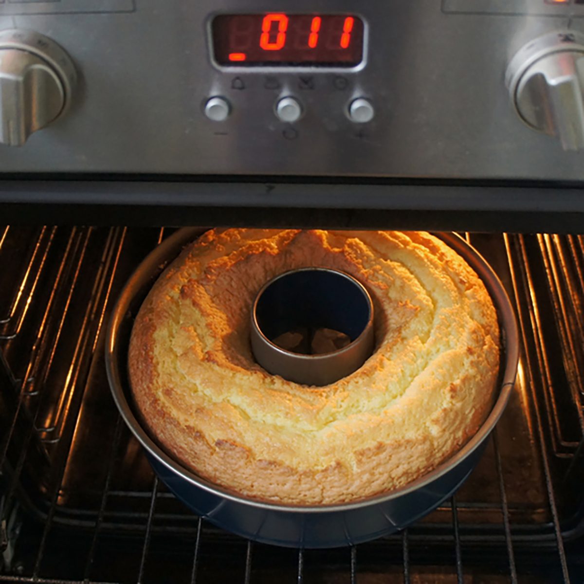 We’re all guilty of this one. You want to check on the cake so you open the oven door every couple of minutes… but those changes in temperature can cause your cake to cook unevenly or even collapse. If you’re really tempted to peek while making this chocolate angel cake, use the oven light.