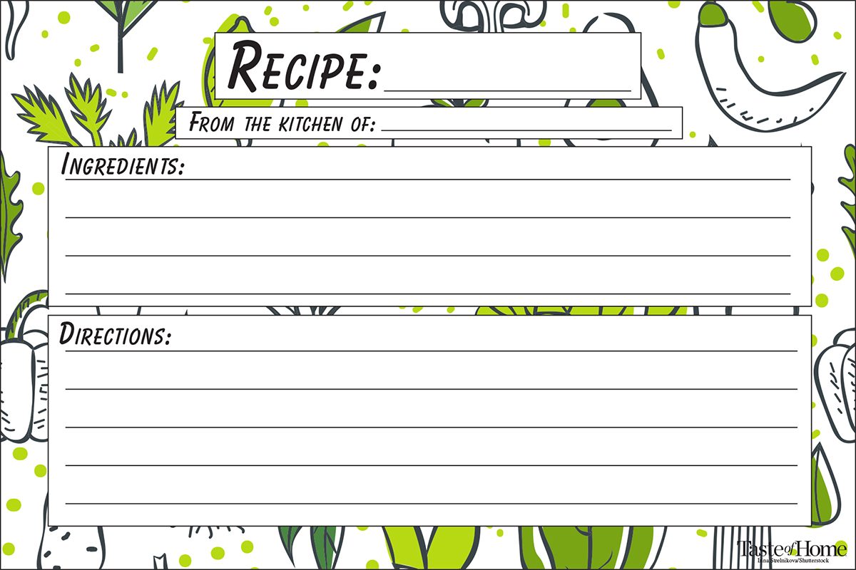 Write down your coziest casseroles, warmest soups and meatiest chilies on these wintry recipe cards. Pull them out on a cold winter’s day when all you want to do is snuggle up with a good book and a bowl of something warm to eat.