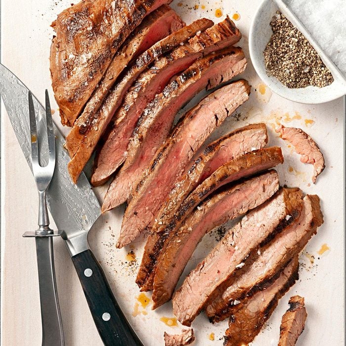 I first grilled this appetizing flank steak for my father on a special occasion. We loved it so much that I now make it this way all the time. The steak marinates overnight, so there's little last-minute preparation to worry about. —Ann Fox, Austin, Texas