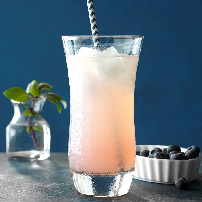 Blueberry and lime are two of my favorite flavors, so I added blueberries to my favorite mixed drink! This Fourth of July cocktail can easily be doubled or tripled. To make simple syrup, combine 1/2 cup sugar and 1/2 cup water and cook over medium heat until the sugar is dissolved. Simple syrup will keep in the fridge for a week.—Michele Tungett, Rochester, Illinois