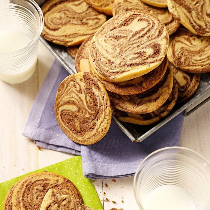I created this combination. The two doughs swirled together create a marbled pattern that’s so pretty, the cookies don’t need additional decorations! This is the best chocolate-peanut butter cookie you'll make! —Lori Kesinger, Baker, Montana