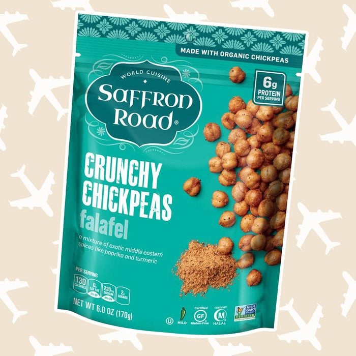 Snack guilt-free on these delicious falafel flavored chickpeas from Saffron Road. These organic crunchy chickpeas are Non-GMO, gluten-free and Halal, as well as serving up six grams of protein. Pack a bag for a quick bite, or to put some pizzazz on a boring in-flight salad.