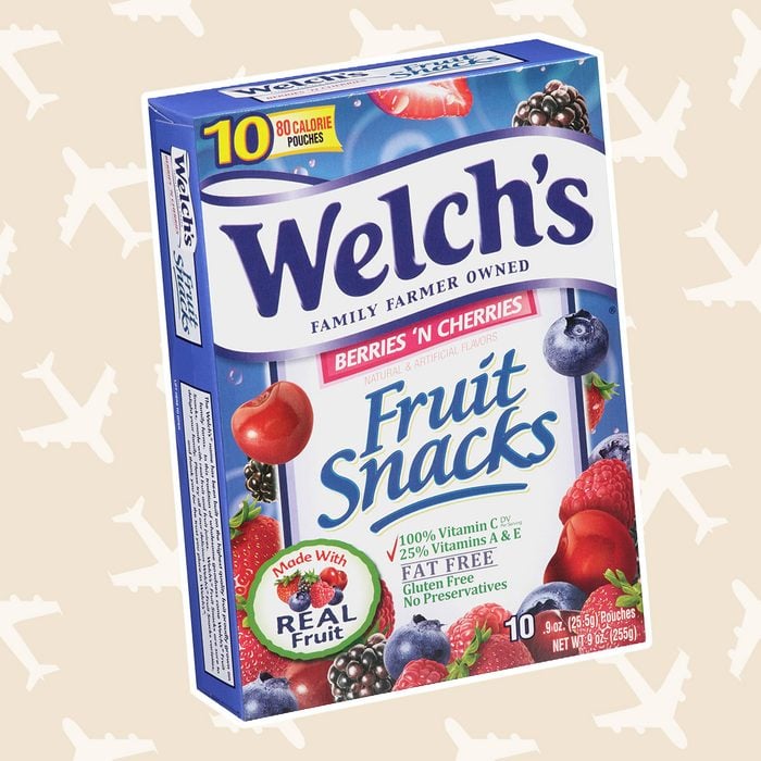 Skip the tupperware, and pack Van’s PB&J Sandwich bars instead. Made with real peanut butter and blueberries, these snack bars taste as good as the original, and they’re totally gluten free. Each bar packs 10 grams of whole grains. Just be sure to check there are no peanut allergies aboard your plane before unwrapping.