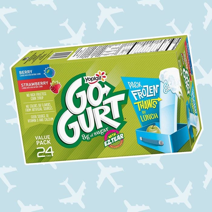 While most yogurt is a no-go given TSA’s 3.4 ounce limit on liquids, GoGurt’s low-fat yogurt comes in 2 ounce tubes. It’s a great low-fat option for kids, and you can freeze them beforehand so they stay nice and cold throughout check-in.