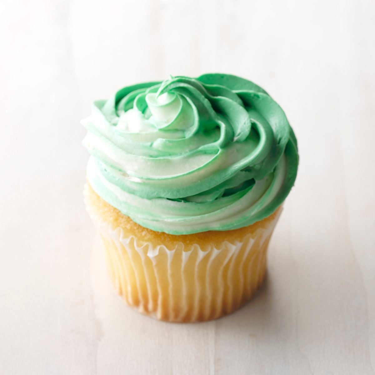 For something a little more elegant, there’s no cupcake decoration that beats the classic frosting rose. To achieve this look, place a closed star tip in a pastry bag and fill it with slightly cool frosting. Starting in the middle of the cupcake, gently squeeze the pastry bag while moving the tip in a counter-clockwise direction. Once you reach the edges of the cupcake, loosen your grip on the pastry bag and lift it from the frosting. Easy peasy. For more help, take a look at these piping bag tips that will have you frosting like a pro.