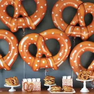 Giant pretzels are great. Giant pretzel balloons might be even better. Splurge on a themed balloon (or two!) from this Etsy designer, then decorate the rest of the room with colorful streamers, banners and balloons you get from the dollar store.