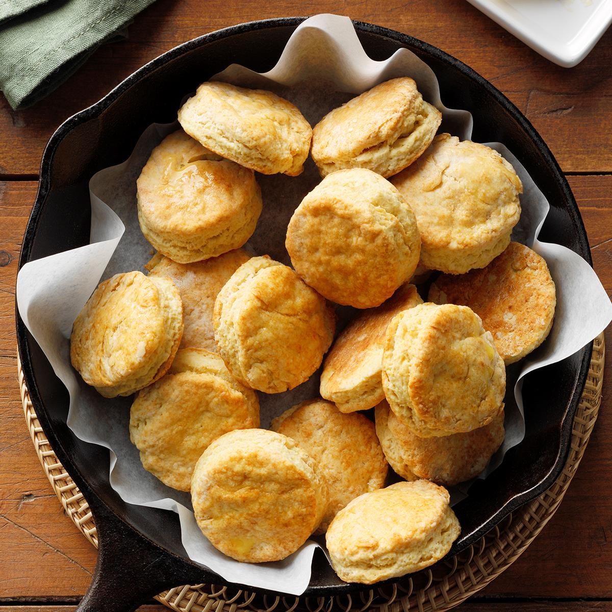 When it comes to biscuits, the taller and flakier the better, right? To help your biscuits get a bit more height, Food Editor Rashanda Cobbins recommends placing biscuits close together on your sheet pan or skillet. Having the biscuits just touching (but not smooshed together) helps them cling to one another to climb just a smidge higher. Try this out with these skillet buttermilk biscuits.