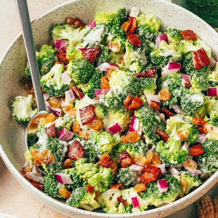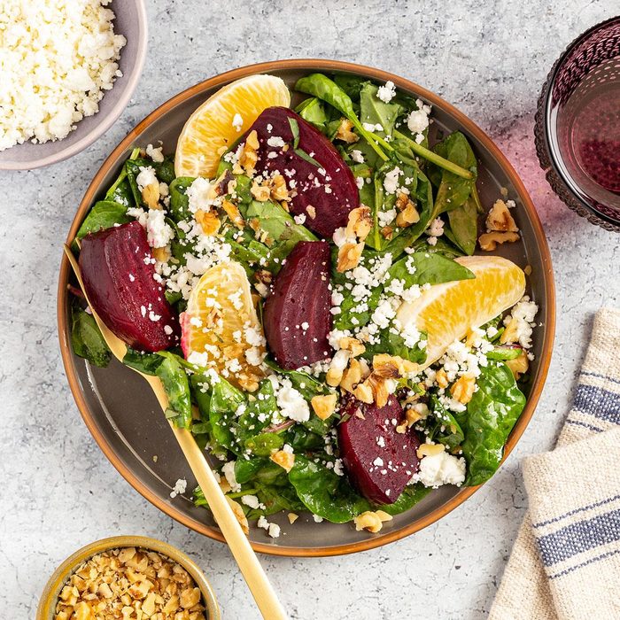 For a brunch buffet, sprinkle brunch salads throughout the table rather than placing them right next to each other, so people don’t fill their plates with heavy mains before they see the lighter options. If you decide to keep mains and sides separate, start the buffet with vegetable salads and set fruit ones after the main dishes, in place of or alongside the desserts. For a sit-down brunch, pass a brunch salad after the main dish that it complements best. Start a multicourse brunch with the freshest salad or serve it between courses as a palate cleanser.