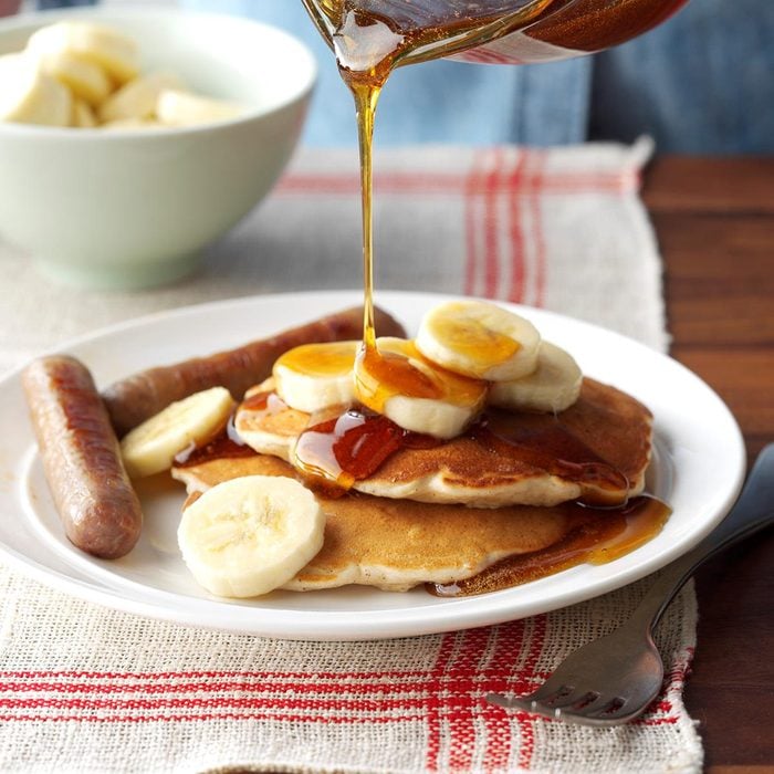 I concocted these fluffy banana oatmeal pancakes using a muffin recipe. We love them topped with strawberry jam for breakfast, supper or even just snacking. They're delicious drizzled with maple syrup, too. —Janie Obermier, St. Joseph, Missouri