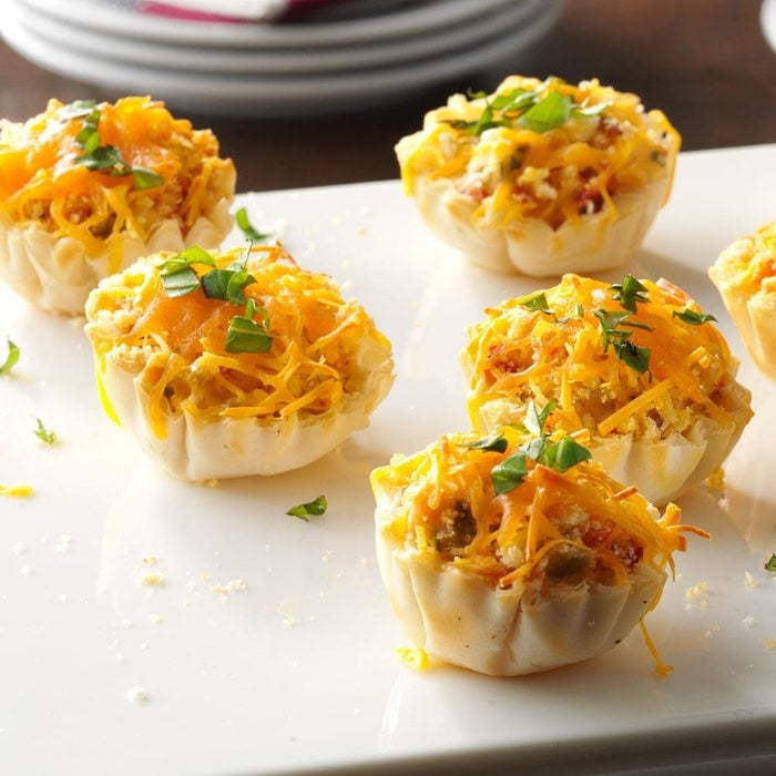 Frozen mini phyllo tart shells are so convenient and easy to use. Just add a savory filling featuring sun-dried tomatoes and bacon, then pop them in the oven.—Patricia Quinn, Omaha, Nebraska