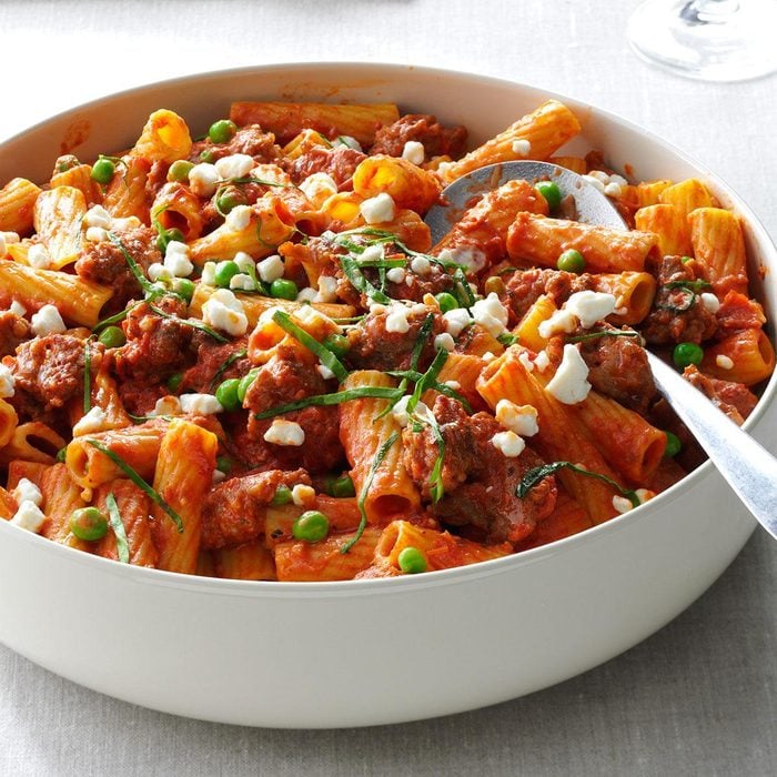Freezing pesto made with summer’s basil bounty comes in handy throughout the year. Here, simply add it to chicken and pasta for this herbaceous one-pot meal.