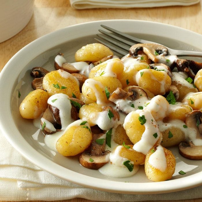 For a homey dinner in a hurry, you can’t go wrong with this stovetop chicken and gnocchi recipe. Personalize it with your favorite sauce, like marinara, and your choice of cheese and seasonings.