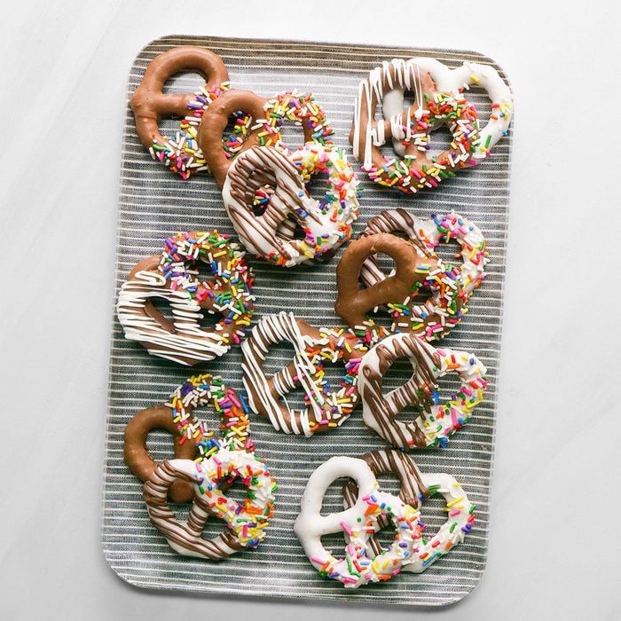 Cookies shouldn’t have all the fun on Christmas. Shake things up with these fun chocolate-dipped pretzels, which kids will love dipping in all sorts of colorful sprinkles.