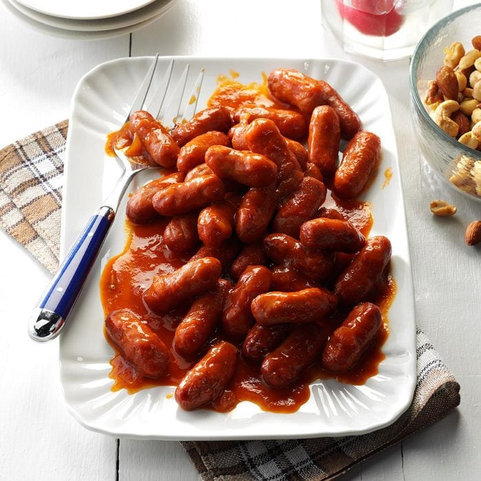 Here’s a wonderful nibble for a tailgate or any family function. The appetizer with little smokies is so easy to prepare and also very tasty. I’ve doubled and even tripled the recipe for large groups. No matter how much I make, I always come home with an empty slow cooker. —Jan Kasinger, Graham, Washington