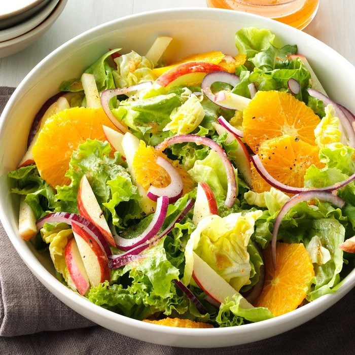 I discovered this fragrant salad in a cooking class. If you can, try to find orange flower water (also called orange blossom water), which perks up the orange segments. But orange juice adds a nice zip, too! —Carol Richardson Marty, Lynwood, Washington