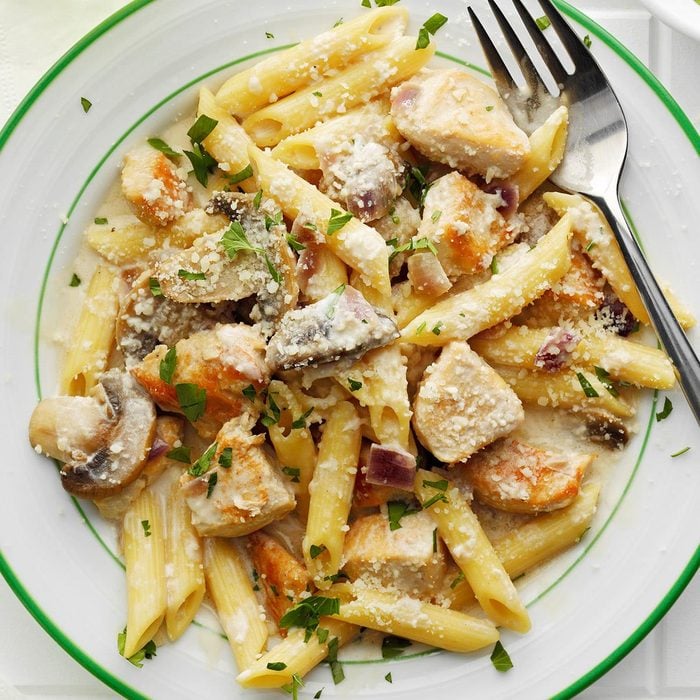 I'm always looking for dinners that I can put together quickly. I re-created a favorite pasta dish from an Italian restaurant by using grocery store convenience products. Add crusty bread and a salad for a complete meal. —Christine Ward, Austin, Texas