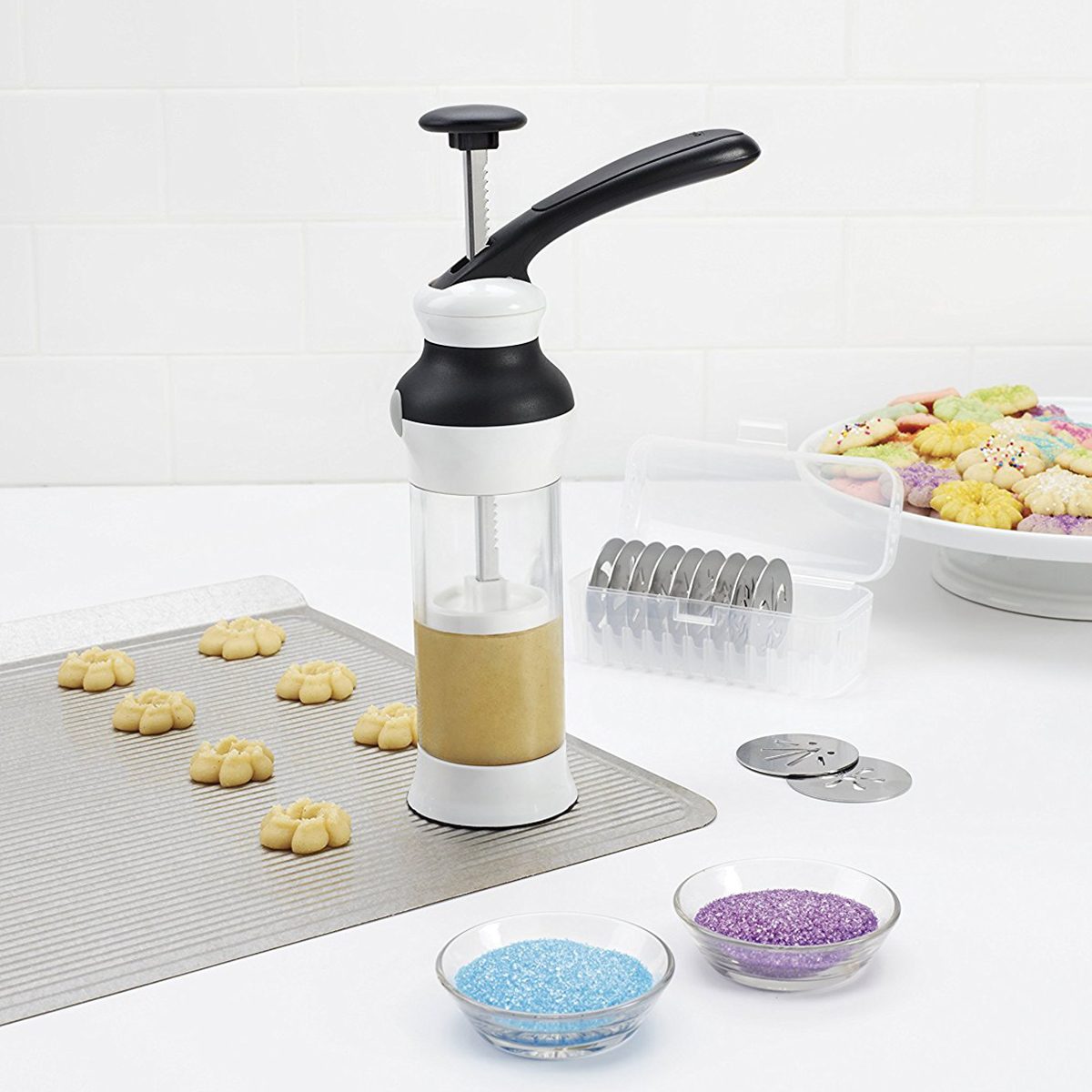 A cookie press like this ($30) will push dough through cutout discs to create perfectly shaped cookies with factory-like efficiency. That means less time perfecting the shape of Christmas-tree cookies and more time enjoying the festive flavor. Whip up these spritz cookie recipes.