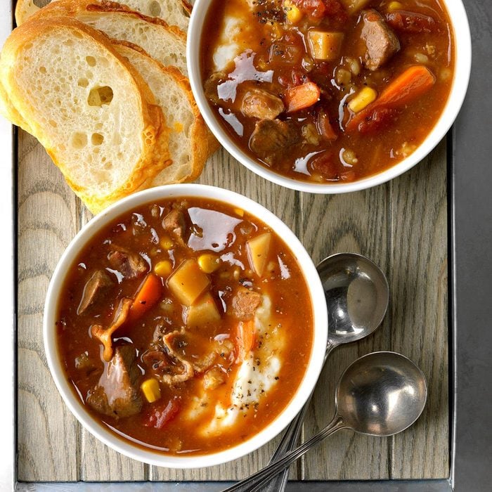 Many Christmas soups can be made ahead and stored in the refrigerator or freezer, like roasted tomato, Italian white bean and chicken vegetable. Soups can be refrigerated for three to four days before serving. Freezer-friendly soups can be made two to three months in advance. For the best results when freezing soup, avoid dairy or starch-heavy recipes, which can become grainy or mushy when reheated. Freeze cooked pasta, rice and potatoes separately, then add when reheating.