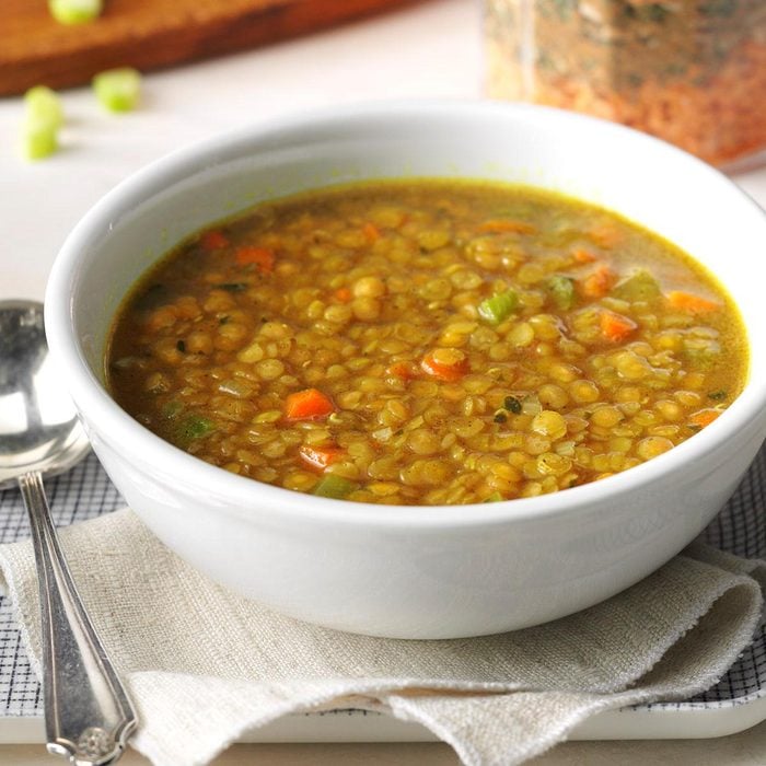 Give your friends the gift of good health. Red lentils are protein powerhouses and are loaded with folate, iron and fiber. Oh, and this soup tastes amazing too. —Taste of Home Test Kitchen