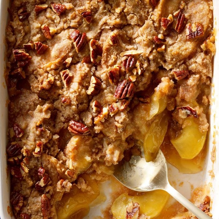 I saw this recipe on a cooking show and came up with my own version. When the comforting aroma of this homey dessert drifts through the house, it’s hard not to take a quick peek inside the slow cooker —Sherri Melotik, Oak Creek, Wisconsin