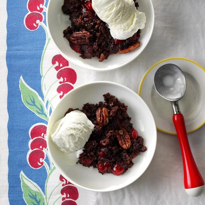 My mother-in-law loves chocolate-covered cherries, and I used to make this chocolate cherry dump cake every year for her birthday. Now we’ve moved away, but I make this for my kids on her birthday and they still feel near her. —Angela Lively, Conroe, Texas. Looking for more variations? Try this quick recipe to make a cherry dump cake.