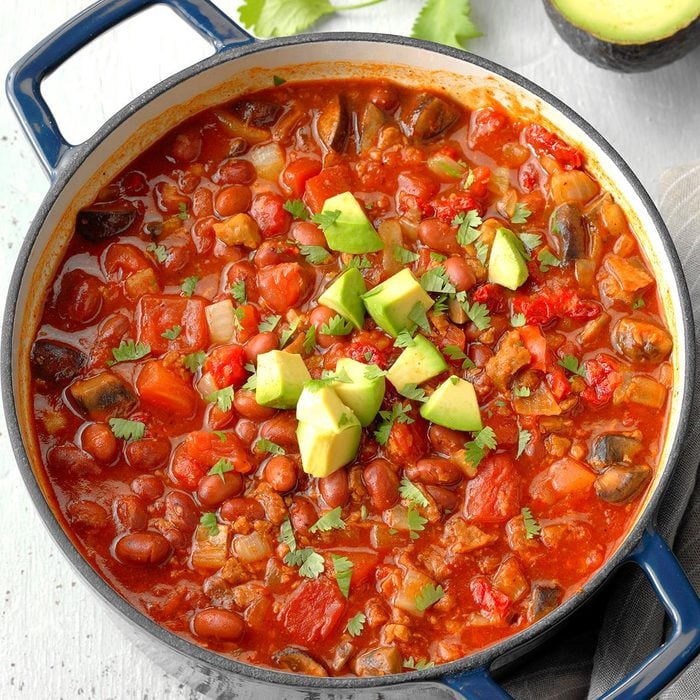 Rich and flavorful, this chili is absolutely packed with fun veggies like mushrooms, beans and sun-dried tomatoes. It’s so filling, you’ll fool any meat lover. —Pam Ivbuls, Omaha, Nebraska
