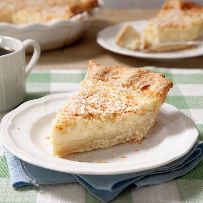 Toasted coconut mingles with velvety custard in this luscious coconut cream pie. Save a little extra coconut for the top, or replace it with coconut whipped cream.