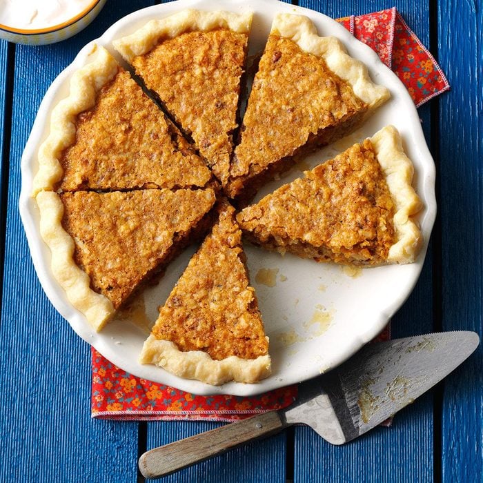 Yes, “sawdust” isn’t the most appetizing of names, but don’t let this deter you from enjoying a truly incredible pie. It gets its name from the filling mixture of oats, coconut and chopped pecans.