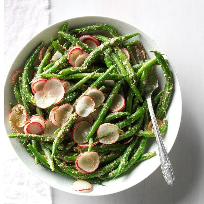 This salad will look beautiful in a big salad bowl on your Easter table. The sliced radish adds a nice pop of color.