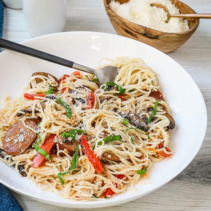 Sausage pairs well with other veggies, like zucchini, tomatoes and broccoli, so feel free to toss some extra vegetables into your skillet.