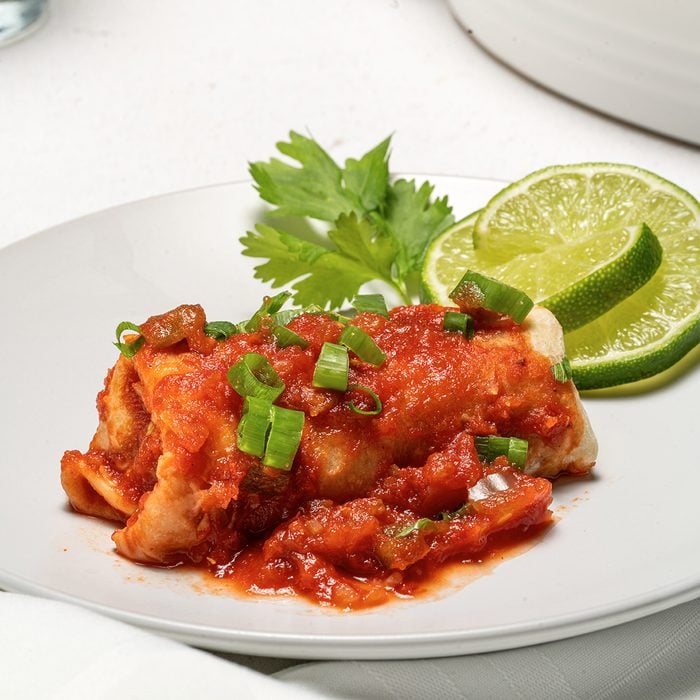 This Dutch oven stew has only five ingredients, and is prepped, cooked and on the table in less than 15 minutes. And it’s an easy dinner recipe to riff on—add some heat by using a spicy sausage, such as chorizo or andouille; toss in pickled jalapenos or chipotle peppers; or mix in frozen or canned corn or green beans.