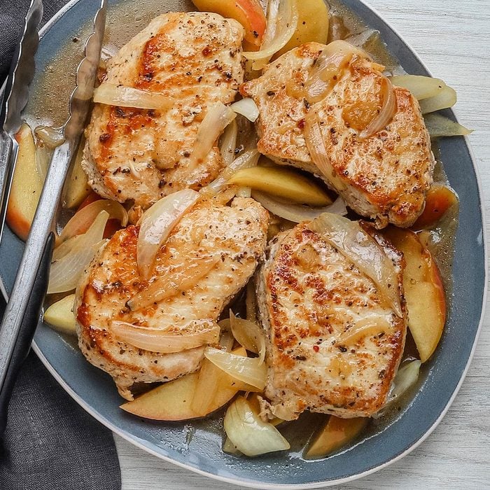 Think of this easy dinner idea as a more grown-up version of pork chops and applesauce.