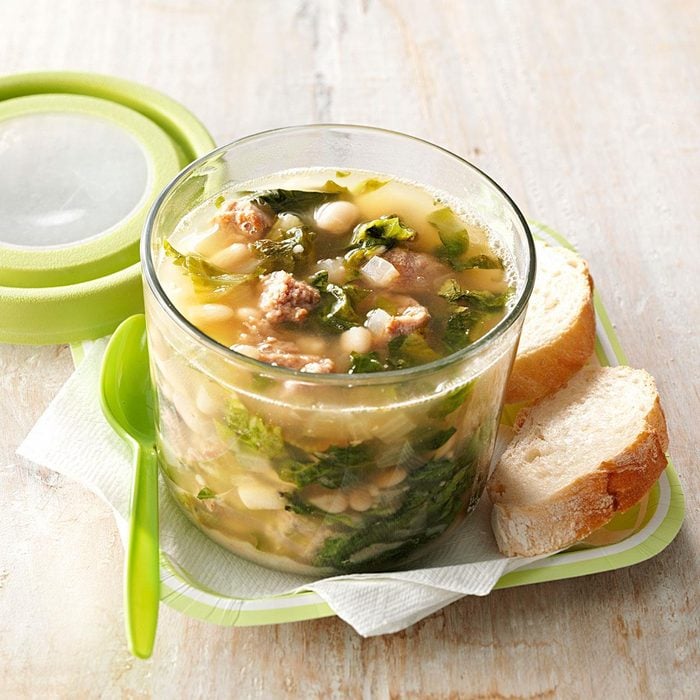 Beans and greens make for a dream combo in this scrumptious and satisfying soup. Serve it alongside crunchy, buttery garlic bread and a fresh green salad. —Sue Draheim, Waterford, Wisconsin