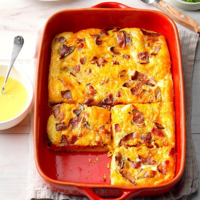 When I was growing up, we had a family tradition of having eggs Benedict with champagne and orange juice for our Christmas breakfast. But now that I’m cooking, a fussy breakfast isn’t my style. I wanted to come up with a dish I could make ahead that would mimic the flavors of traditional eggs Benedict and would also freeze well. Friends, all I can say is, this one fits the bill! —Lyndsay Wells, Ladysmith, British Columbia