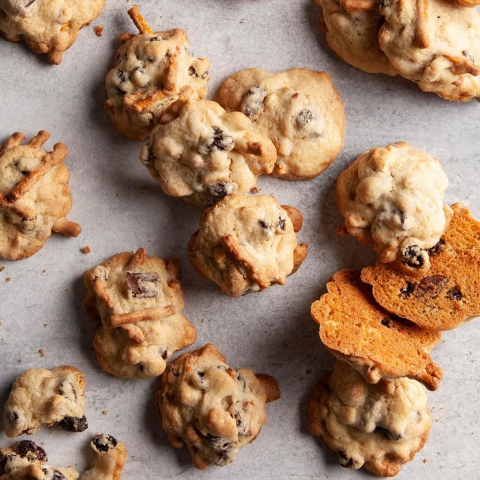 The night before I make these drop cookies, I measure out the pretzels, peanuts, raisins and chocolate. Assembly goes quickly the next day. —Kelly Ward-Hartman, Cape Coral, Florida