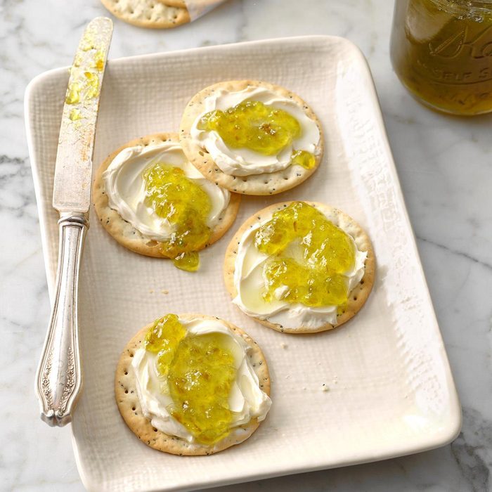 A jar of this sweet and spicy jelly is always warmly appreciated. To add an extra southwestern accent, I trim the lid with a snappy bandanna print fabric. —Lori McMullen, Victoria, Texas